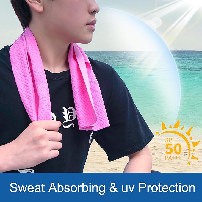 - MULTIPLE FUNCTIONS:This lightweight breathable cost-effective towel is great for sports enthusiasts who enjoy golf,swimming,gym,exercise and fitness.It can protect you from sun damage in hot summer,keep cool-feeling all the day for outdoor activities in all seasons.in total, it's versatile that can be worn as a head cover, neck wrap or scarf