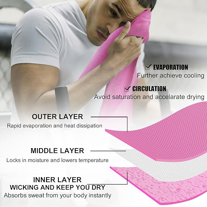 1PACK Microfiber Sweat Towel Stay Cooling Ice Towels for Yoga,Sport,Running,Gym,Workout,Camping,Fitness,Workout Breathable Soft Chilly Neck Wraps Premium Fine Towels, Pink, SFDJ050624