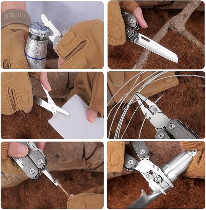 - 【Use in Multiple Places】The sleek design makes it an ideal Multi-Plier for any outdoor activity (camping, fishing, hiking, cooking, picnic, or DIY). It is suitable for everyday use around the home or office. You can master the Multi-Purpose tool and handle any problems easily.