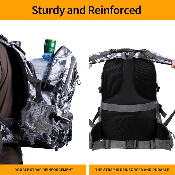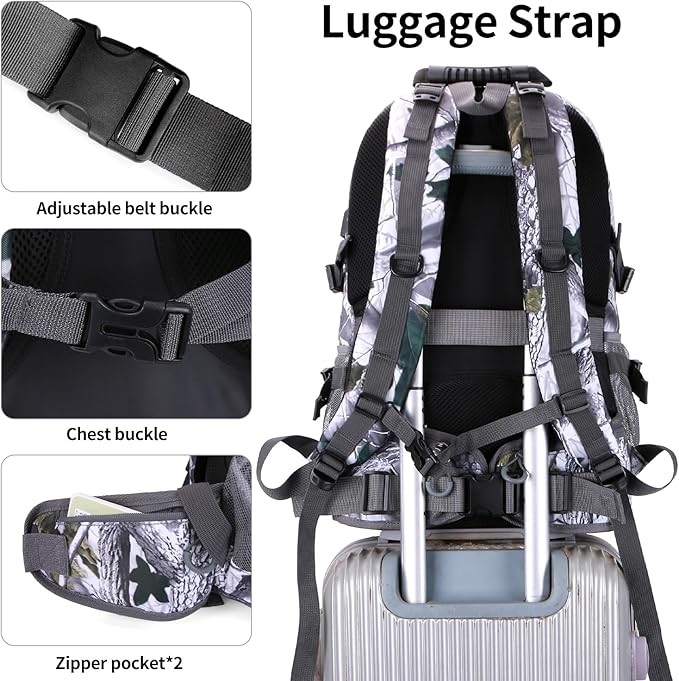 - Large Capacity: With 40L storage space, this backpack features with multi-compartment design includes one main zipped compartment, several front pockets with zippers and two side pockets. Large capacity helps you easily organize all your essential items.