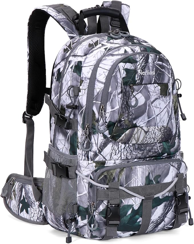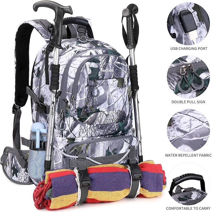 Nerlion 40L Hiking Backpack Travel Backpack for Men Women Camping Waterproof Outdoor Hiking Daypack Lightweight Backpack (White Leaves)