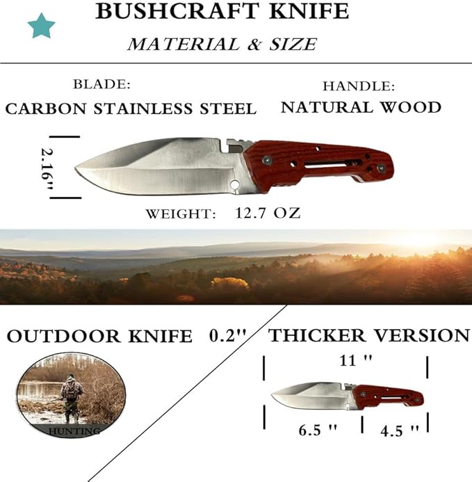 - 【5mm Thicken & larger Stainless Steel Blade】:The thicker blade makes the fixed steel knife more durable stronger for beating back the underbrush and trailblazing and the bushcraft knife comes with cost-effective 5cr15mov stainless steel is excellent wear resistance,edge retention and suitable for hard outdoor use that will split wood while larger blades are more suitable for heavy-duty tasks such as chopping in the woods,Jungle pioneering missions.