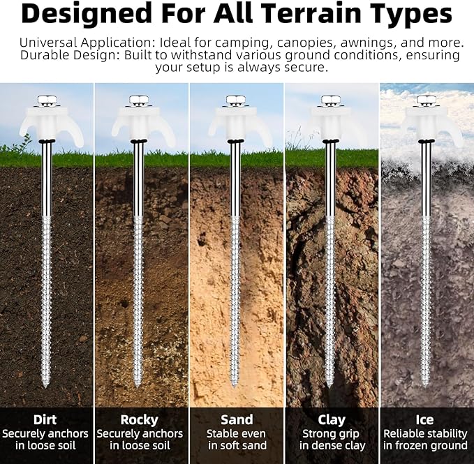 - HIGH QUALITY & DURABLE: Made from premium steel, these stakes feature a threaded end for easy insertion and a superior grip on various surfaces, including grass, hard soil, and gravel. These heavy-duty stakes ensure your equipment stays securely in place.
