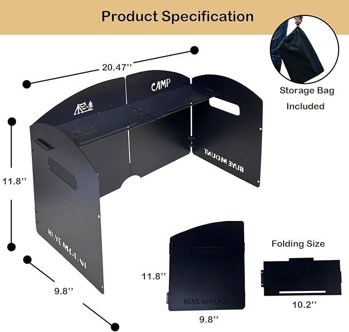 - Foldable and Portable: The windscreen is designed to be foldable, making it extremely compact and easy to carry. It conveniently fits into your backpack or camping gear, taking up minimal space while ensuring you have wind protection whenever you need it.