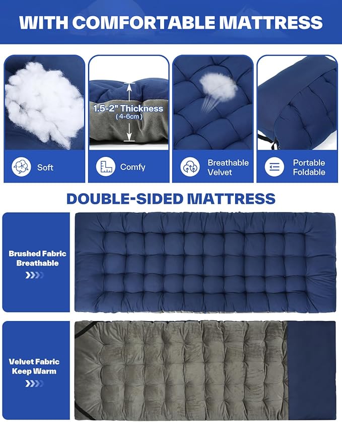 - Versatile Application: Take this bed with you on camping trips, picnics, fishing adventures, hikes, and more. Or utilize it as a fantastic option for accommodating guests. Whether you have friends staying over or family visiting, you can offer them the comfort of a real cot for sleeping, ensuring they have a restful night's sleep. Whether you're heading outdoors or staying indoors, this bed will provide you with a comfortable sleeping experience like no other.