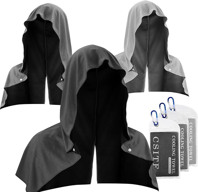 3 Pack Cooling Hoodie Towels for Neck and Face, UPF 50 Sun Protection & Instant Cooling, Ice Towels for Hot Weather, Soft Breathable Towel for Sport, Work Out, Gym, Camping & More Activities