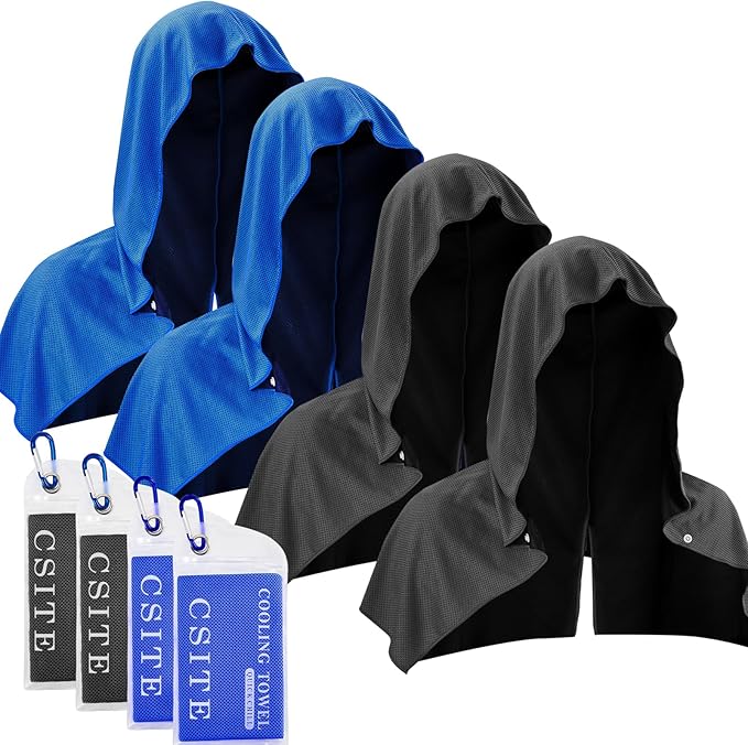 4 Pack Cooling Hoodie Towels for Neck and Face, UPF 50 Sun Protection & Instant Cooling, Ice Towels for Hot Weather, Soft Breathable Towel for Sport, Work Out, Gym, Camping & More Activities