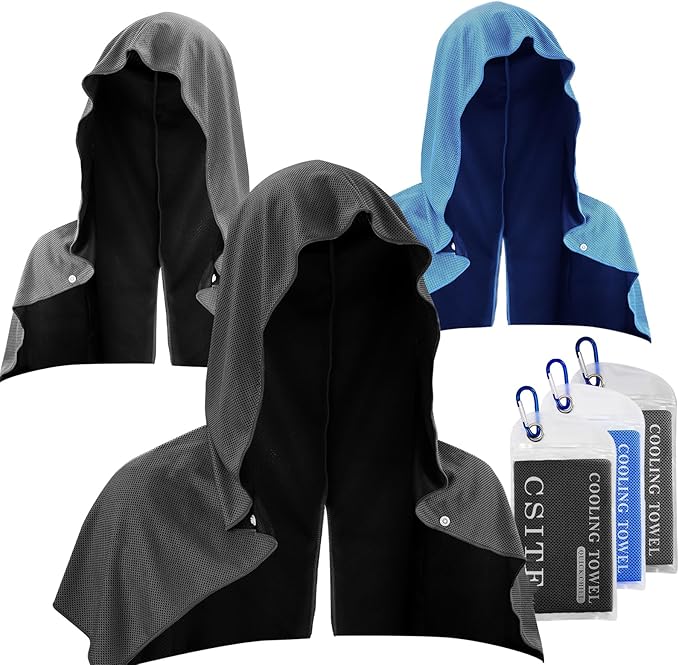 3 Pack Cooling Hoodie Towels for Neck and Face, UPF 50 Sun Protection & Instant Cooling, Ice Towels for Hot Weather, Soft Breathable Towel for Sport, Work Out, Gym, Camping & More Activities