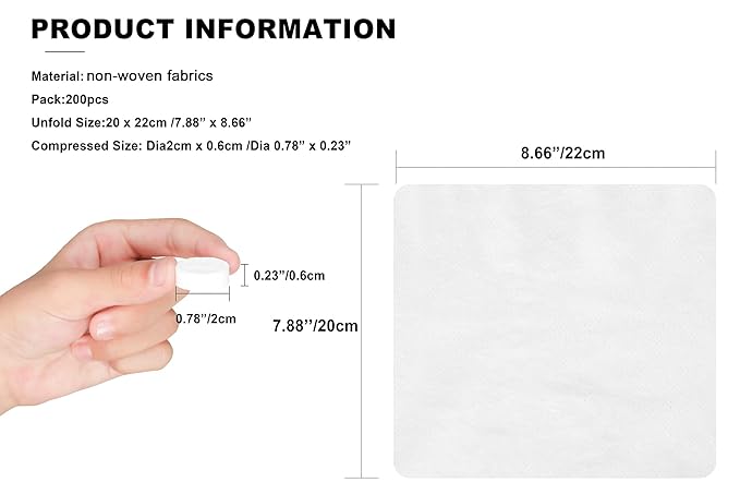 - 【Multi Purpose Cleaning】Adding small water the size can be enlarged to 20*22cm in 3 seconds, At only measure2cm across by 0.6cm tall when compressed, carry it with you for short traveling, hiking, camping or take it as home wipes and daily washing, Suitable for wiping hands, face, glasses and more, the towels quickly absorb dirt and liquids when outdoors or on the go.
