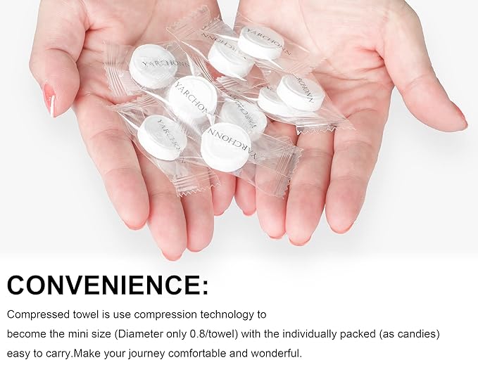 - 【Portable and Compact】100pcs travel towel individually wrapped to prevent dust, can be easily keep in any small bag or suitcase.portable and space-saving, essential for business trips and travel.