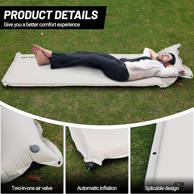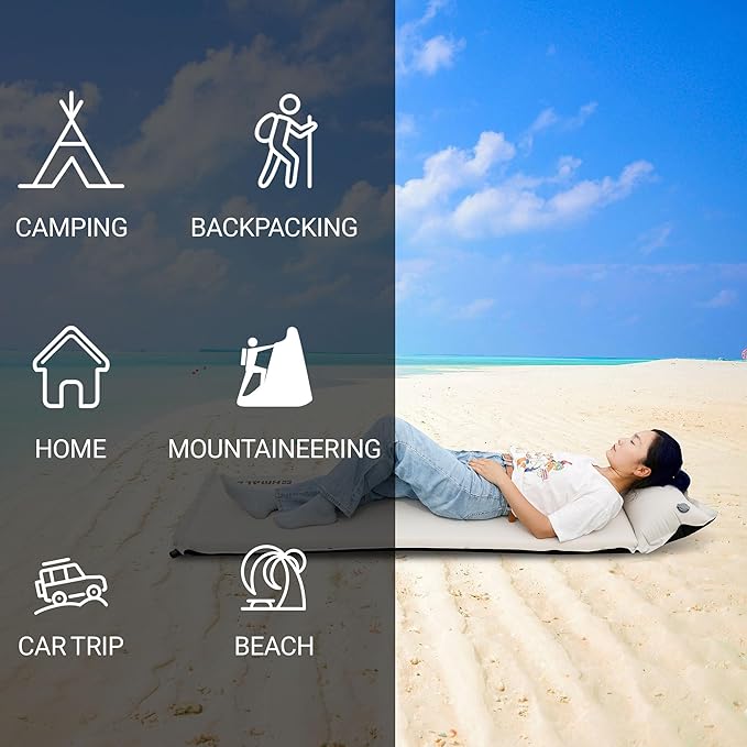 - Waterproof: Constructed with a multi-layered composite design, the inflatable camping mattress effectively ensures you stay dry and comfortable in diverse environments. A must-have among camping essentials, this inflatable sleeping pad provide a restful night's sleep regardless of the terrain.