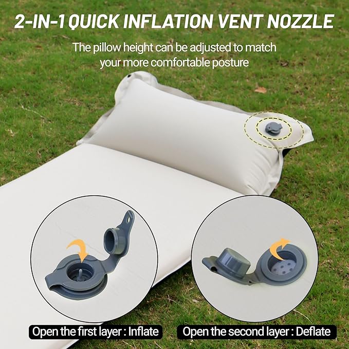 - Effortless Inflation and Deflation: Featuring an enlarged air valve, the backpacking sleeping mat swiftly inflates and deflates, effortlessly creating a comfortable sleeping area without draining your time and energy.