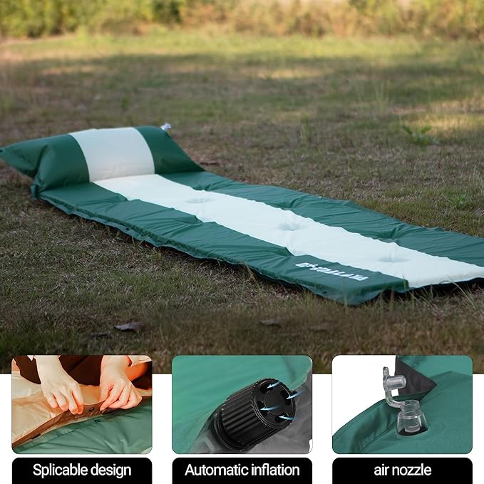 Inflatable Camping Sleeping Mat Compact Camping Pad for Backpacking Hiking Lightweight Sleep Pad Camping Air Mattress with Pillow Foam Sleeping Mat