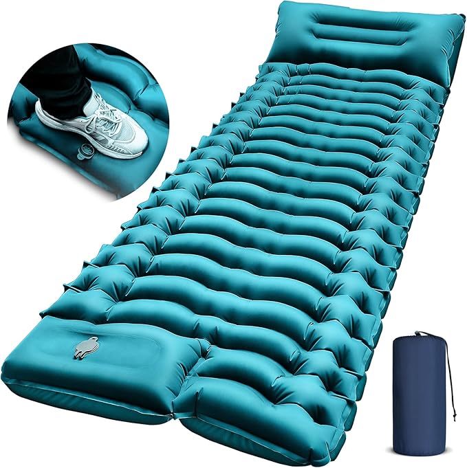 - 【Only 30s Step to Inflate & 1s Deflate】The camping mat has an innovative built-in foot pump. Just pedal 30-60 seconds to inflate it. No need to inflate it with your mouth, hands, or carry a pump. It only takes 1 second to quickly deflate. The new air release valve with no leaking film means you'll never have to worry about air leaking.