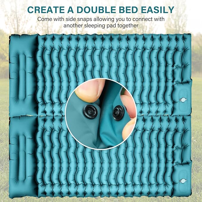 - 【Get One More for A Twin Bed】Our camping pads have buttons on the side. Connect them to make a double bed for a wider, more comfortable sleeping space. Great for camping with friends and family. It comes in different colors on each side.