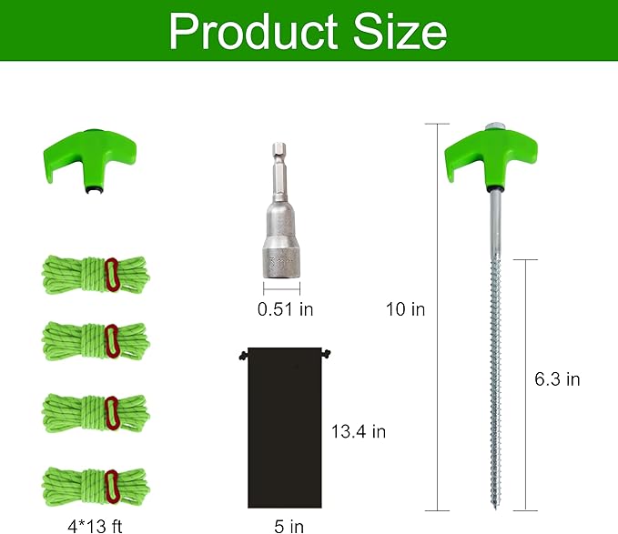 - 【Versatile Ground Anchors】In addition to tents, screw in ground anchors can be used for Young Trees Straightening, Patio, Garden, Canopies, Grassland, Outdoor.