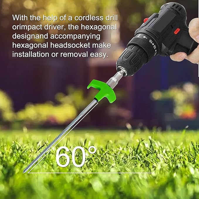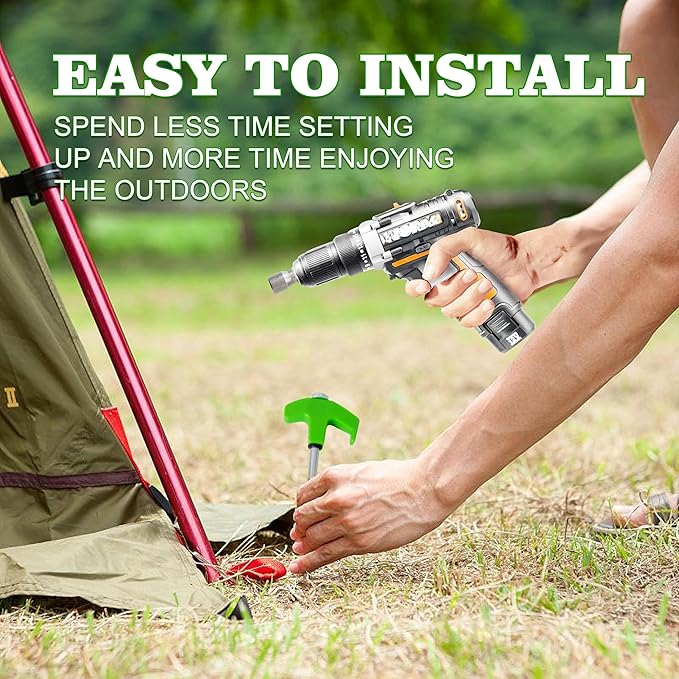 - 【Quick installation】With the help of cordless drill and Hex Head Driver, secure your tent, canopy, pavilion, sunshade, drawstring, or waterproof cloth to the ground in seconds,The drillable tent stakes make campsite assembly fast and easy, letting you enjoy more of your outdoor time.