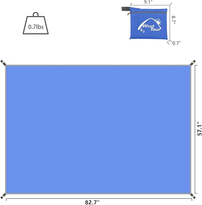 Wind Tour Portable Multifunctional Outdoor Camping Tarp Groundsheet Footprint Lightweight Floor and Ground Tarps for Camping Hiking with Carry Bag (Blue-57" x 83")
