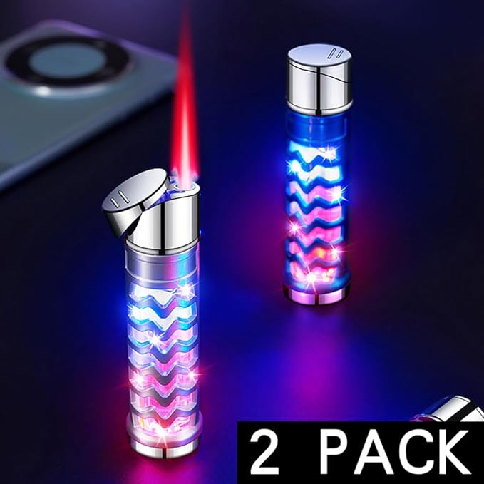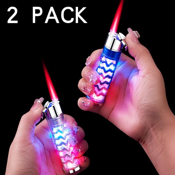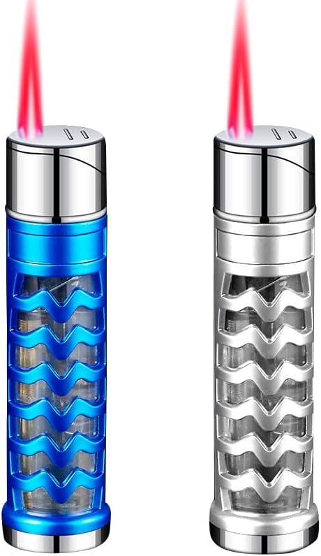 2 Pack Blue and Silver Windproof Butane Jet Torch Lighter,Funny Cool Lighters,Adjustable Jet Flame Torch,Refillable,Grill BBQ Candle Camping(Without Gas)