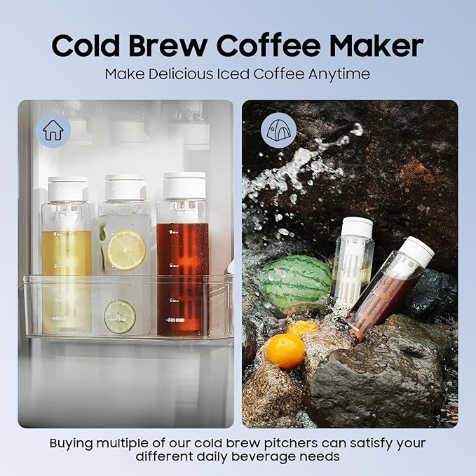 - High-quality Tritan Materials: Our iced coffee maker is made of Tritan Materials, which Withstands -20°F to 212°F without deformation. Lighter than glass materials and suitable for outdoor travel. transparent, lightweight,durable and reusable.