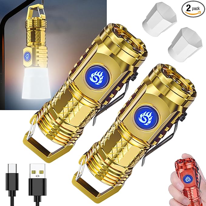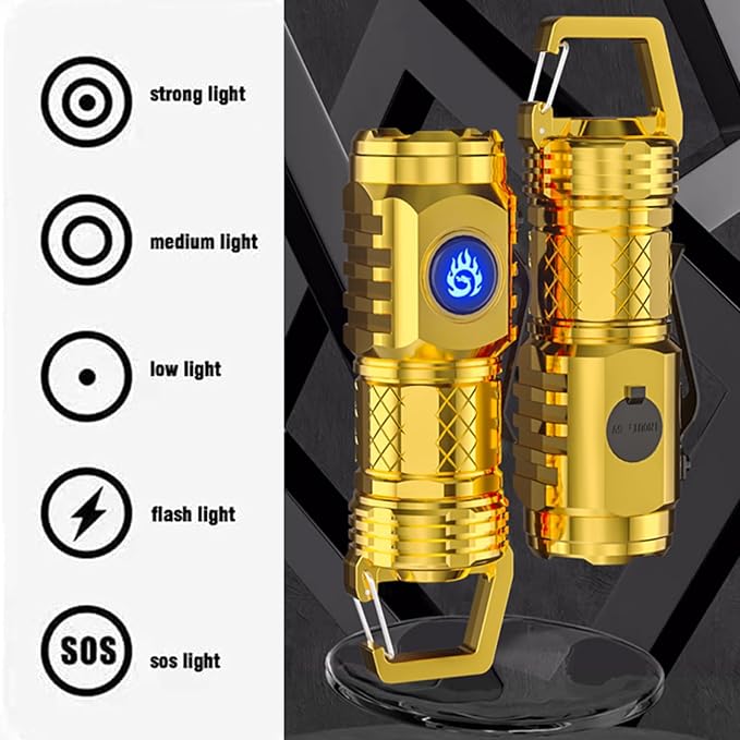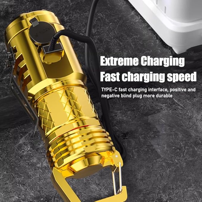 - [Small Flashlights LED] --- People cannot do without prevention, so be prepared for travel and women traveling at night. A sudden flash of light in the dark will instantly blind you and give you a fatal blow! Type-c fast charging interface, safe voltage continuous power supply, built-in smart chip, battery protection, both fast charging and battery life.