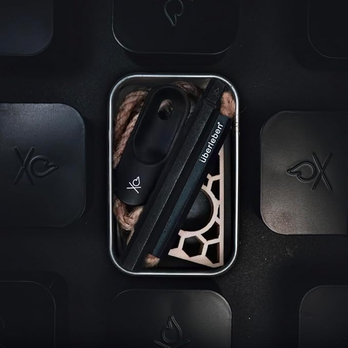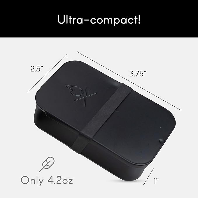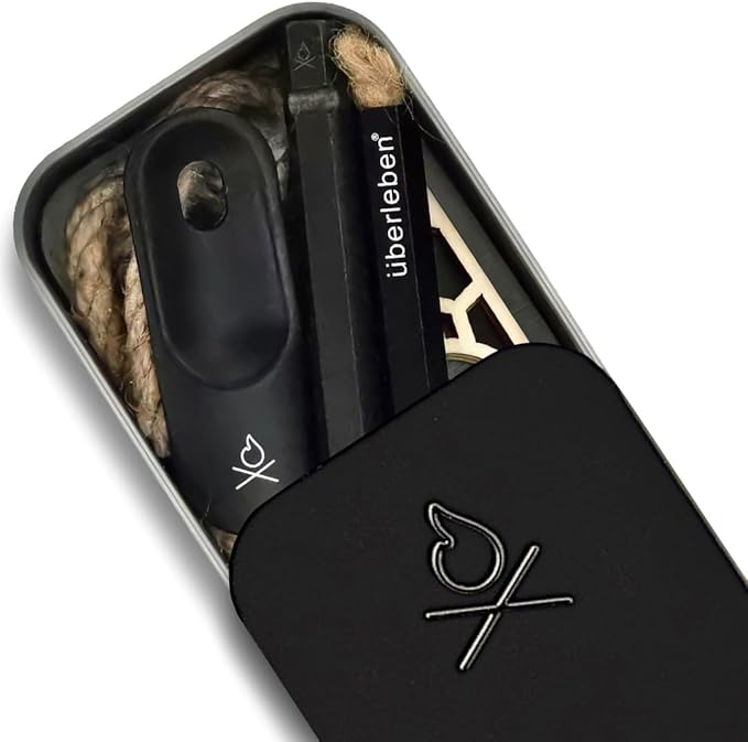 - Slider Tin - Compact and durable, this steel box holds all components neatly and is great for making char cloth. The EDPM rubber band keeps the tin secure and can be burned in a pinch, making it a reliable camp fire starting kit.
