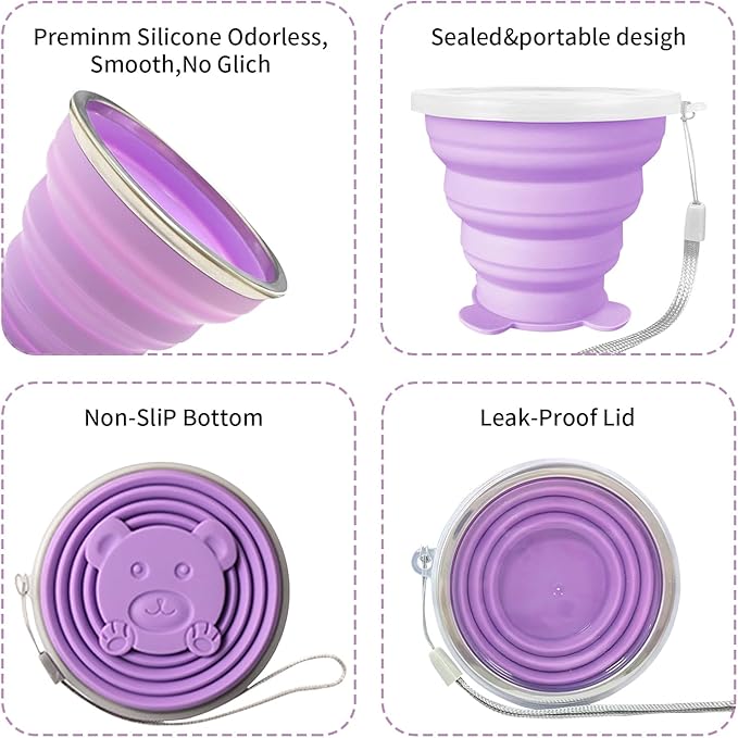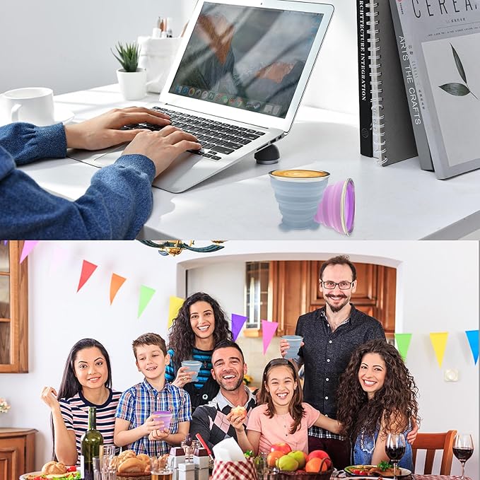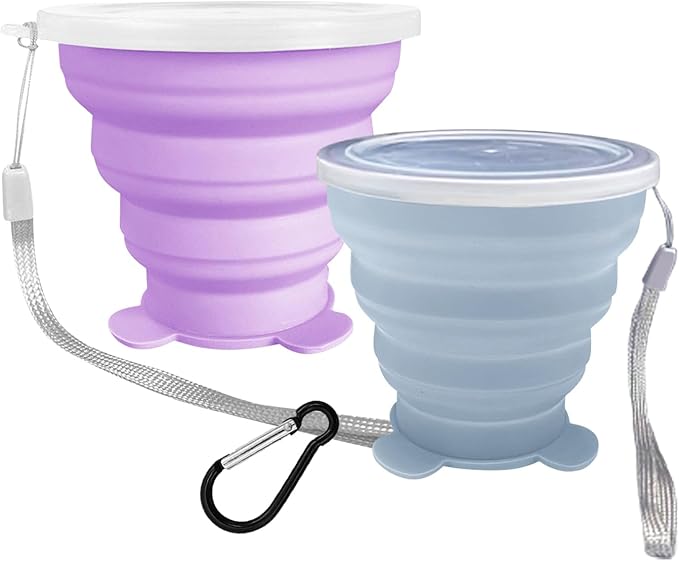 - Collapsible Cup, Silicone Collapsible Travel Cup, Expandable Folding Camping Drinking Cup with Lids Reusable Small Portable Mugs Cup for Travel, Camping, Hiking, Beach, Holiday Vacation, Outdoor Sports