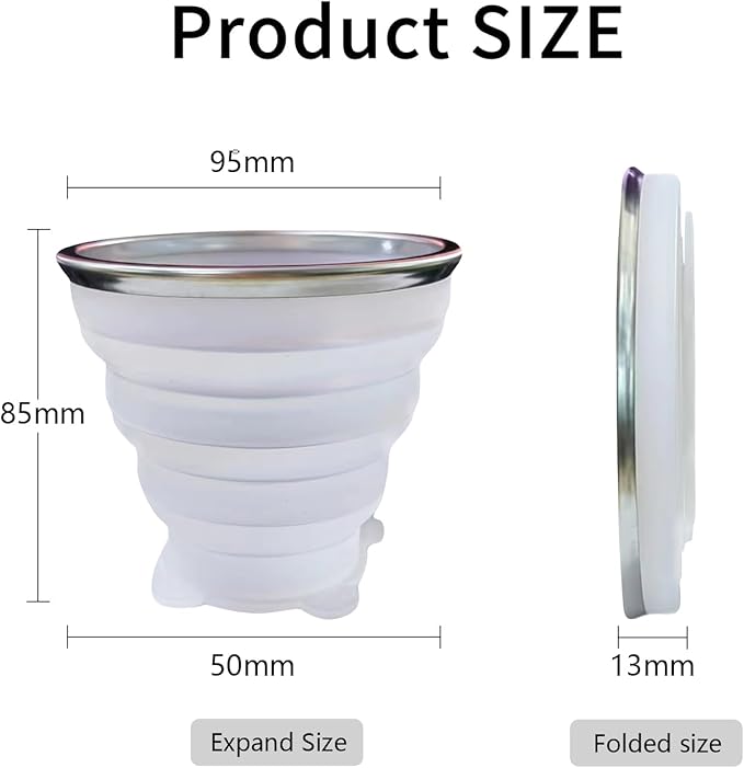 - 🥛【Ultra-thin Foldable Cup】 Updating foldable collapsible design, our silicone foldable collapsible cup has practical folding function that help you save space when you put the cup in your bag, pocket, purse, backpack. Our collapsible cup is only 0.48 inches after being folded, just for mini size which is very suitable for travel, camping, hiking, survival, holiday vacation, outdoor sports event.