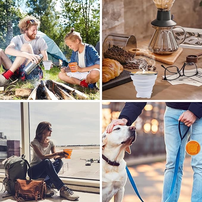 - 🥛【Multi-purpose Portable Travel Cup】Our portable travel cups are multi-purpose. The small collapsible volume, mini size and light weight let mugs cup can be used not only for home, office, indoors rest, but also for almost any occasion, especially suitable for travel, camping, hiking, climbing, holiday vacation, outdoor sports, etc. It is good choice to your kids, family and pets.