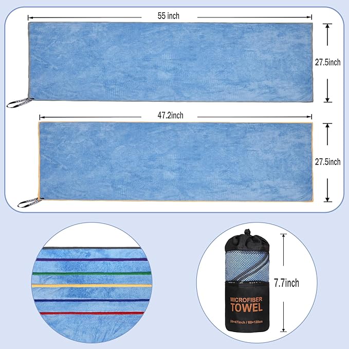 - EASY to CARRY: The towel set can easily carry your quick dry beach towel to different places. The single storage mesh bag is suitable for you to carry when traveling alone.