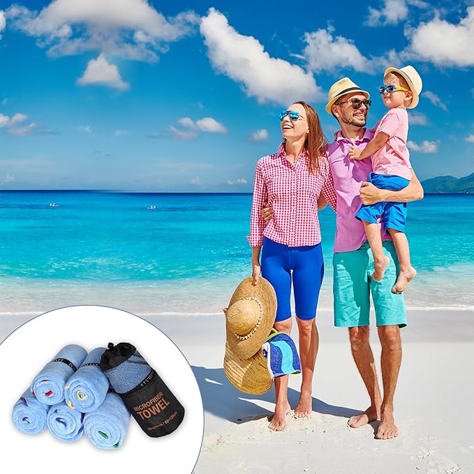 - UNIQUELY DESIGNED SET PACK: The high-quality waterproof towel set contains 6 microfiber camping towels and a separate mesh bag. The unique set pack design is convenient for your family or you and friends to choose between. Different seam marks on the edge of the towel make it easy to find the quick dry towel that belongs to you.