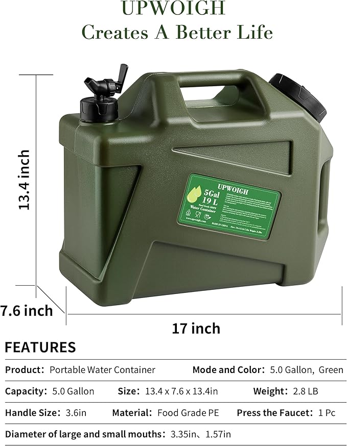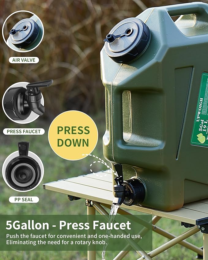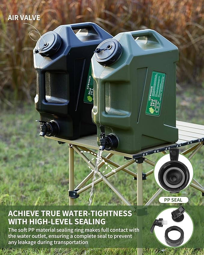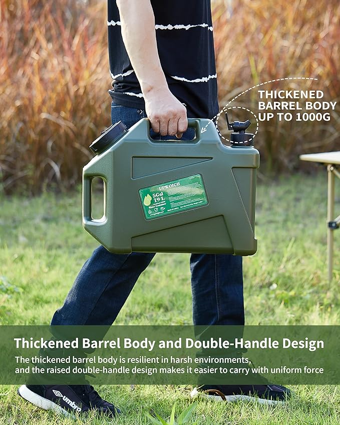 - Large Capacity Design: This 5-gallon water jug provides ample capacity, making it perfect for extended outdoor activities like camping, hiking, and overlanding, ensuring you have a sufficient water supply in any environment.