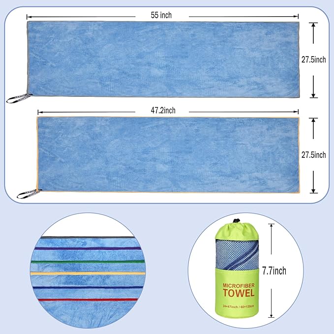 - TOWELS for ADULTS&CHILDREN: We use natural dyes to make microfiber towels friendly to the skin; reinforced stitches and additional camping accessories bag only bring you a better experience.