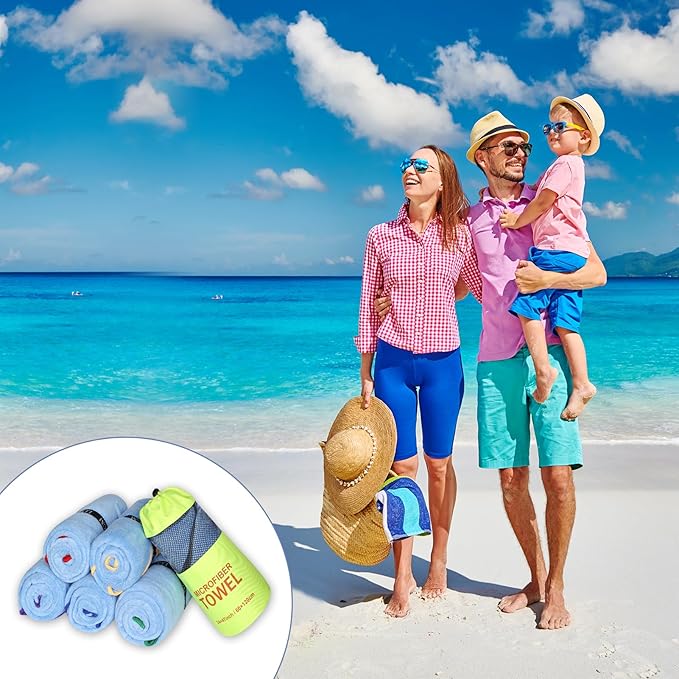 - EASY to CARRY: The towel set can easily carry your quick dry beach towel to different places. The single storage mesh bag is suitable for you to carry when traveling alone.
