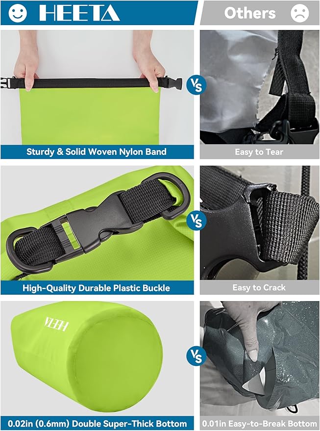 • Durable - Made of 0.02 in (0.5 mm) thick upgraded wear-resistant PVC material, it's suitable for all kinds of outdoor activities. Waterproof bag is well adapted to various weather and environment.