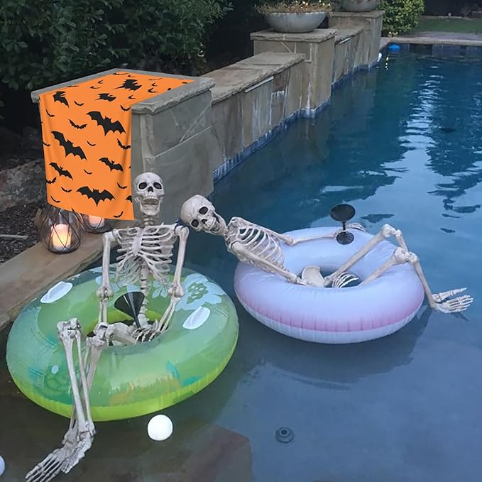 Halloween Bats Theme Beach Towel, Quick Dry Super Absorbent Bath Towels, Orange Oversized Microfiber Bathroom Towels for Shower, pool, Camping, Beach 30x60 in