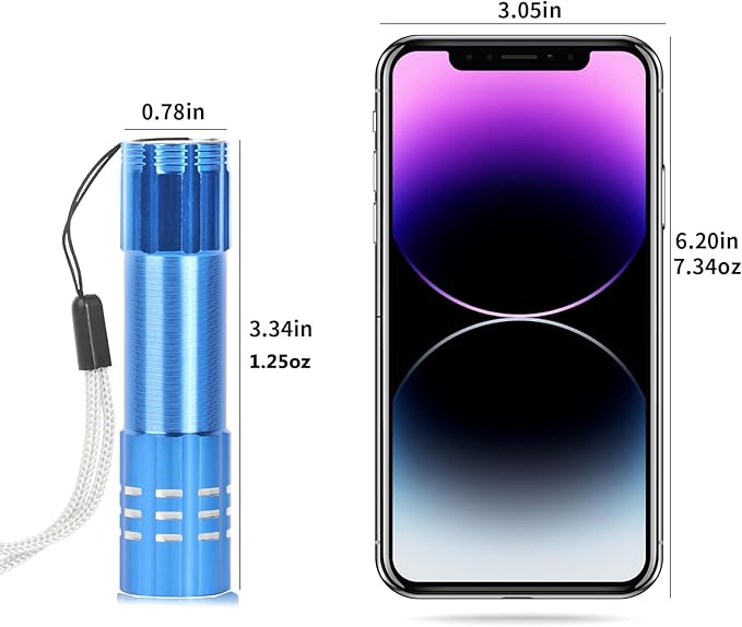 - Easy to Carry: These small torchs are 3.34 inches long and weigh 1.4 oz. With the extended lanyard, it is suitable for carrying it out easily size & lightweight, easily tucked into a pocket or purse car glove box, tool box, bedside table, or purse. It is suitable for a variety of occasions such as walking, camping, exploring, dog walking, partying, or emergency.