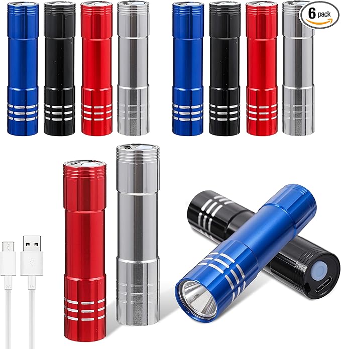 12 Pack LED Aluminum Small Mini USB C Rechargeable Flashlights, Handheld Small Flashlight Bulk for Kids, Portable Camping Bright High Lumens Flashlight Christmas Gifts