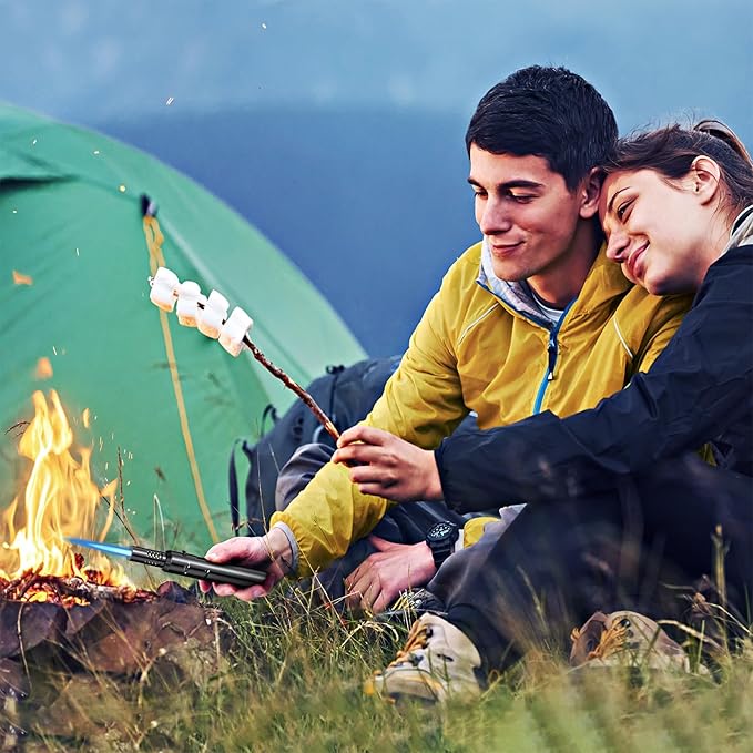 - 【MULTIPUPOSE BUTANE TORCH】This Handheld Grill Torch is Suitable for Different Applications: Caramelizing Sugar, Creme Brulee, Baking, Searing a Steak,Roasting Bell Peppers, Melting Cheese and Toasting Bread Crumbs. Also Useful For Lighting your Fireplace, Candles or Jewelry Making, Welding, Dab Torch, Perfect as a BBQ Lighter, Grill Lighter, Camping Lighter, Emergency Fire Starter and Much More.