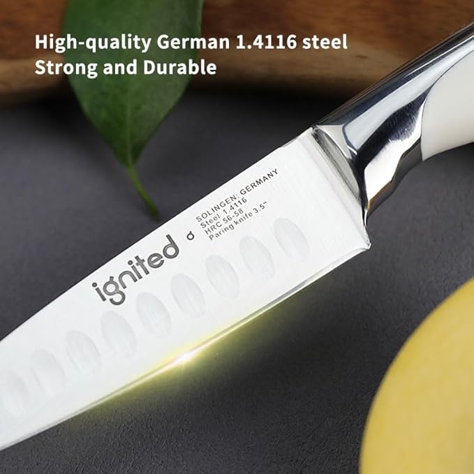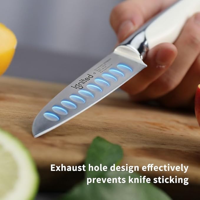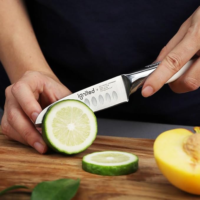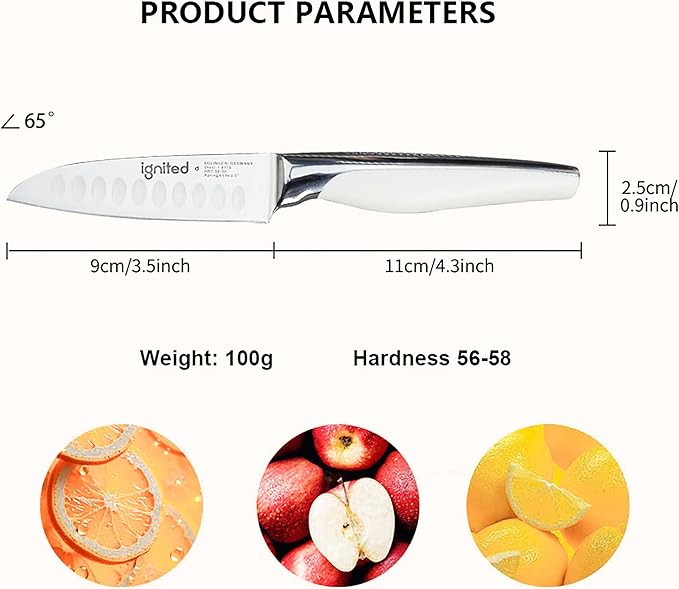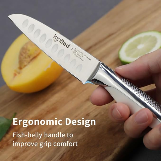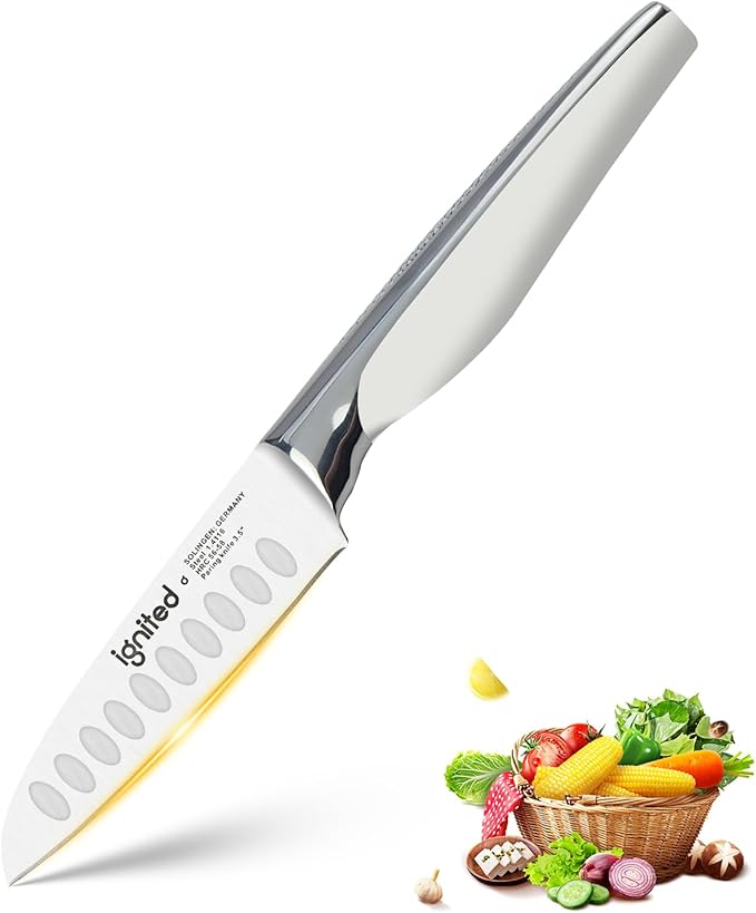 3.5 inch Paring Knife with Anti-slip Textured Handle, Hollow Edge Chef Knife, Razor Sharp Kitchen Knife with Dimples