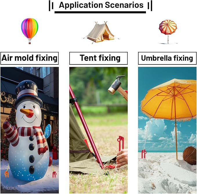 - WIDE USES: Tent pegs are suitable for multiple occasions and festivals, they are very useful for fixing tents, canopies and other outdoor equipment, in addition to fixing festival air models, trampolines or large balloons, and the wide range of colours makes it blend into the environment better.
