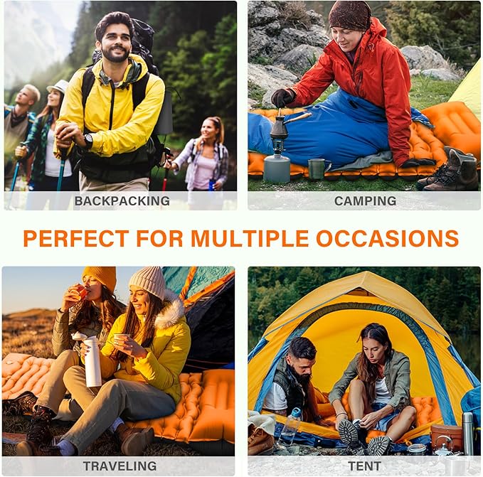 - 【Ultralight & Portable】 This ultra-light self-inflatable sleeping pad is the perfect size for your backpack. It weighs only as much as a water bottle and has a built-in pillow, so you don't have to carry an extra pillow. It's great for hiking, camping, backpacking, traveling, climbing, hiking, and other outdoor activities.