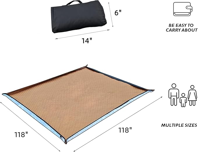 - 【Sizes】: The packable outdoor picnic blanket is available in three sizes: 80"x80", 80"x118", and 118"x118", comfortably accommodating 4-6 adults lying down.