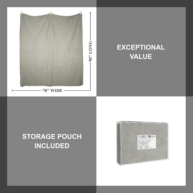 - PREMIUM SPECS - Made from 24 micron virgin wool into a soft, odor-free, and washable wool blanket. Contains no recycled fibers. Includes a reusable storage pouch