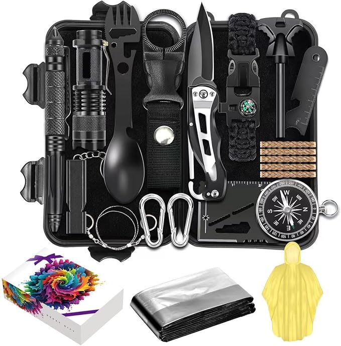Survival kit,16 in 1 Professional Survival Gear Tool kit, Camping Gear, Camping Essentials, for Father's Day, Christmas, Hiking, Hunting