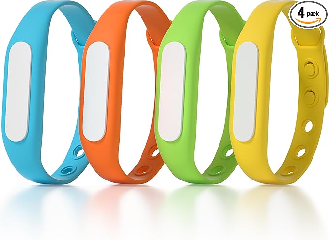 Mosquito Repellent Bracelets for Adult Kids, Individually Wrapped Anti-Insect Wristband for Indoor Outdoor, Waterproof Bug Protection for Camping Fishing Hiking (4 Pack)