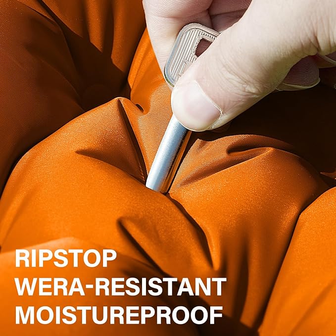 • 【ADVANCED CAMPING DURABLE MATERIAL】- The 2-person camping sleeping pad is made of 40D nylon and TPU coated material, durable, hard-wearing, and no tearing. The camping mattresses are easy to clean, if there is dust or grime, just wipe them down. Designed for harsh outdoor environments, it is your best companion while camping.