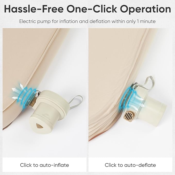 - 【One-Minute Inflation】The air mattress with a portable air pump realizes one-touch inflation and deflation within only 1 minute. Vacuum compression storage can greatly save storage space. Say goodbye to the time-wasting inflating and laborious storage