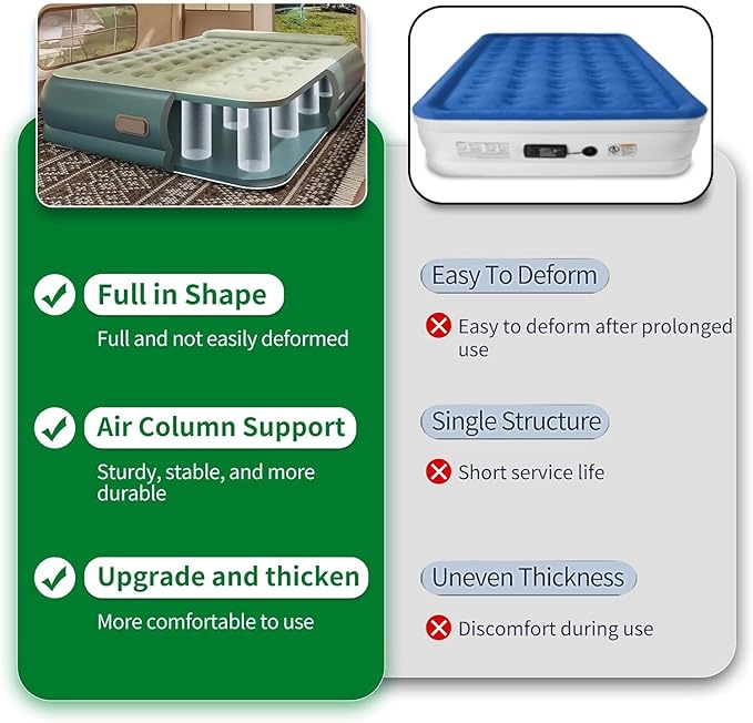 - ✅【Large Size & Thicker PVC Material】Spacious dimensions of 80" x 60" x 16", suitable for two people, providing ample sleeping space. Whether at home or outdoors, stretch out and enjoy quality sleep. Unlike average brand, Aquuaera air mattress use thicker PVC material , it's +30% thicker than average brand's product, plus unique air flow design, prevent leaking air and collapsing,Waterproof and puncture-resistant,resulting in ultimate durability for years of lasting comfort, stability, and support