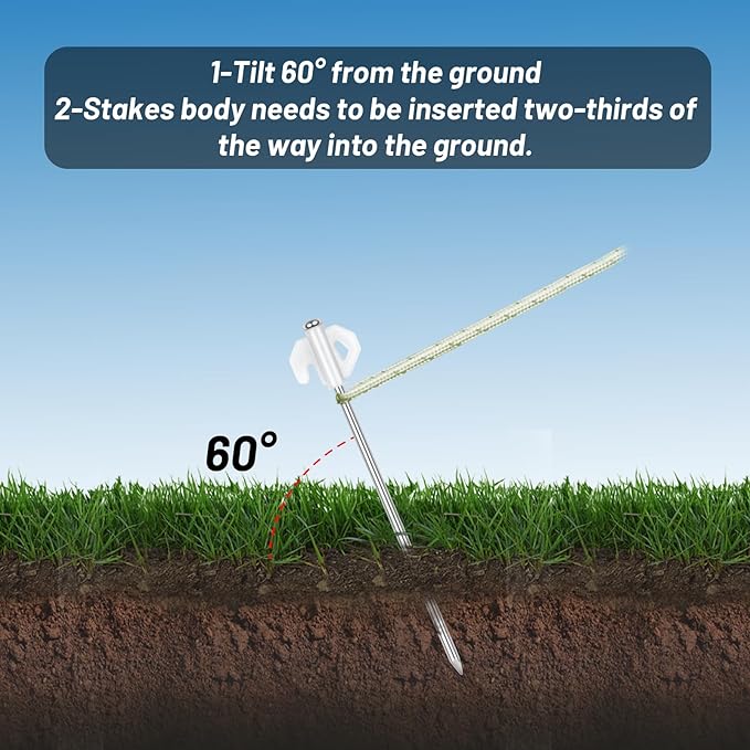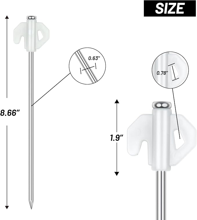 - 【EASY INSTALLATION】When you are out camping, tent peg can save a lot of effort for you. It has sharp tip, which is strong for all kinds of grass, sand and rocks to penetrate in. The anti-detachment hook allows you to secure your rope quickly.